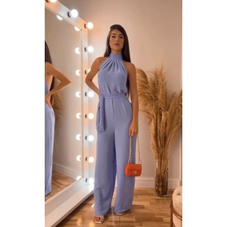 Enterizo bota ancha, cuello alto y espalda descubierta, tela suave y de excelente calidad